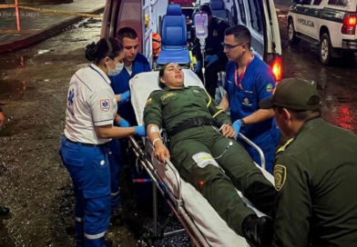 Una patrullera de la Policía Nacional es atendida en un centro asistencial de Valledupar, luego de resultar herida en medio