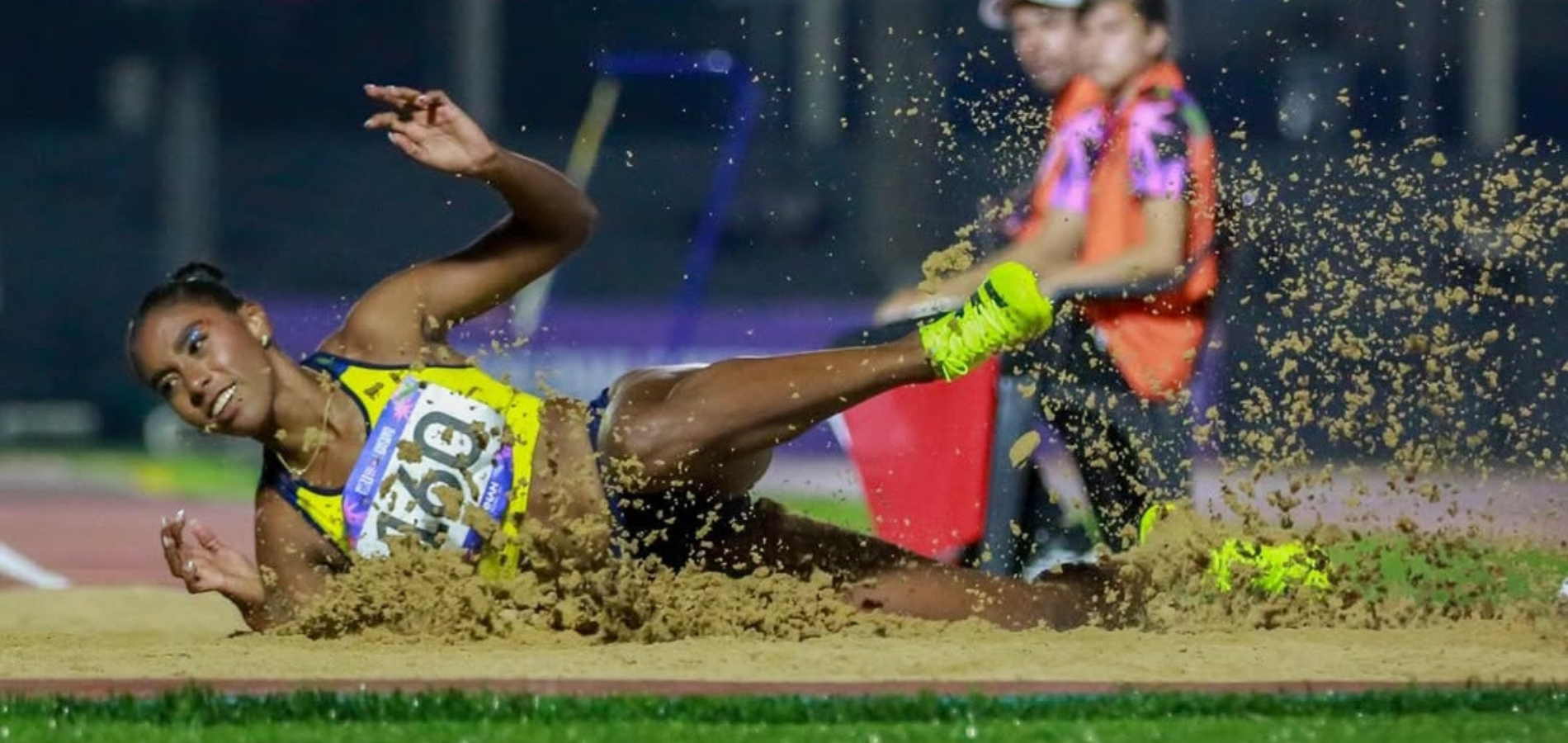 El podio del salto largo femenino quedó conformado por Natalia Linares (Colombia) con 6,92m, seguida por la cubana Rosmaiby Queada (6,35m) y la trinitaria Janae De Gannes (6,33m). Palacios completó la participación colombiana en el cuarto lugar.