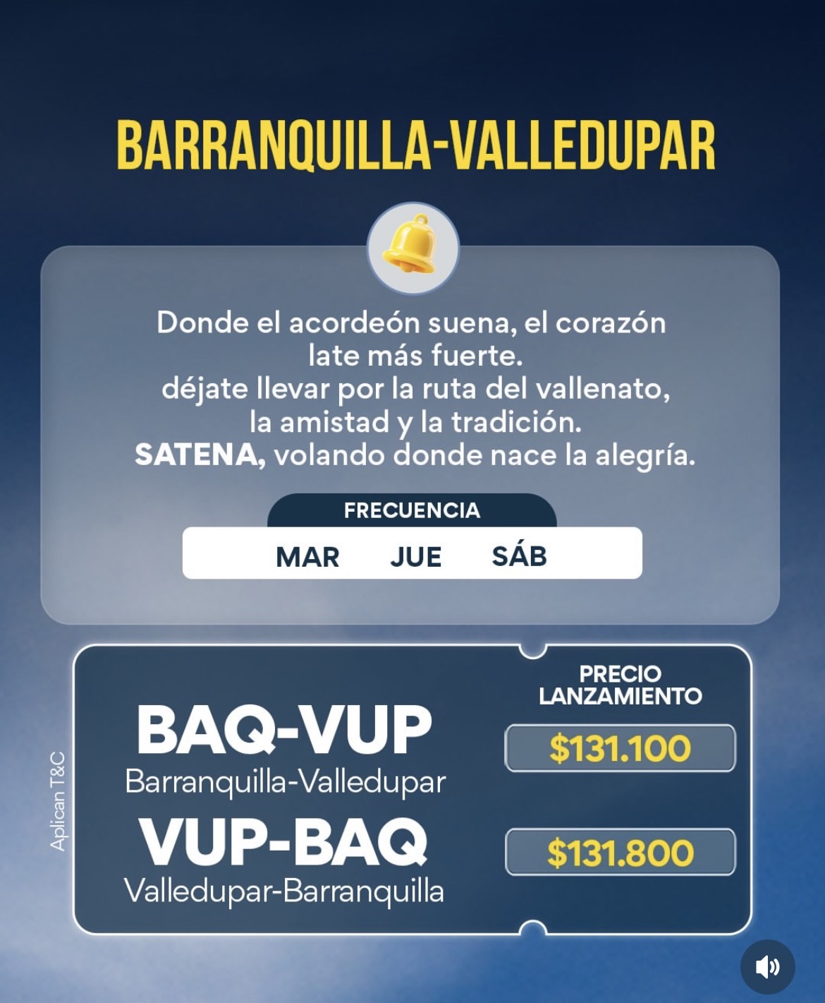 • Tarifas de lanzamiento: desde $131.100 por trayecto en www.satena.com.