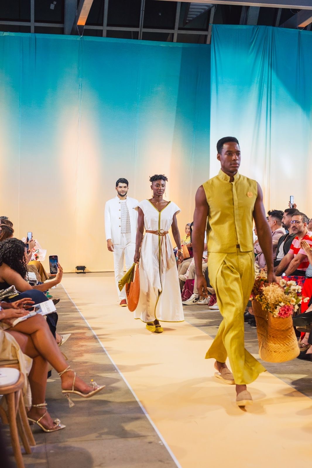 La colección se caracterizó por el uso de telas frescas y naturales, como el lino, combinadas con siluetas modernas que exaltan la elegancia tradicional del Caribe.