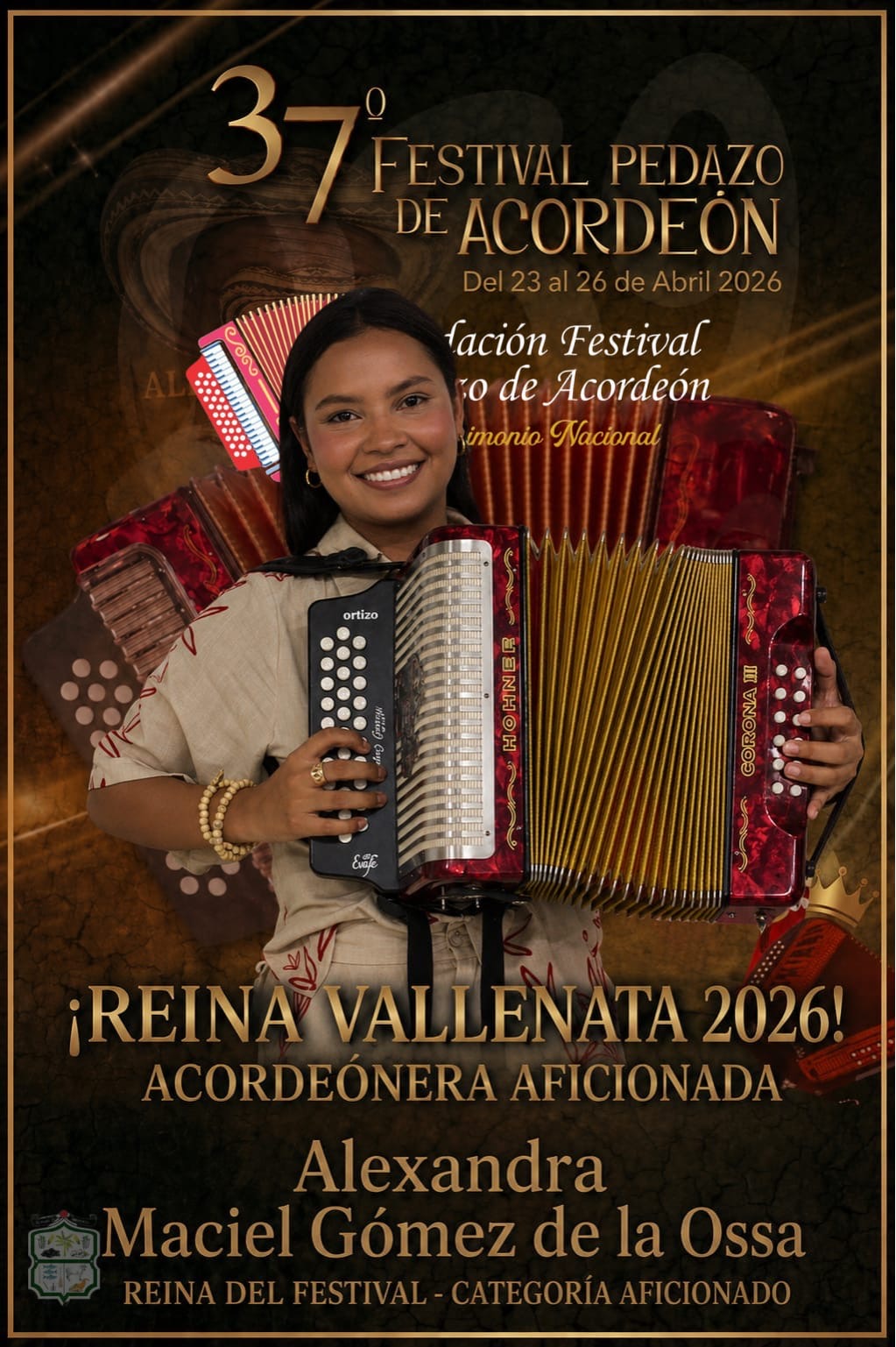 En la categoría de Acordeoneros Aficionados, el primer lugar fue para Alexandra Maciel Gómez de la Ossa, seguida por Jeferson David Bermúdez Rangel y María del Rosario Ortiz Roja.